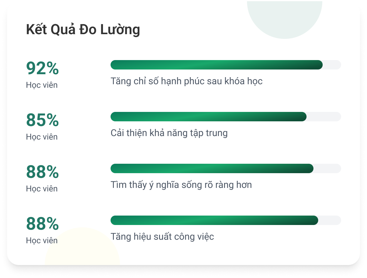 Bạn hoàn toàn có thể nắm được kỹ năng làm chủ cảm xúc và đạt được hạnh phúc tự thân chỉ trong 1 - 3 tháng cùng cùng Vibrant Life.